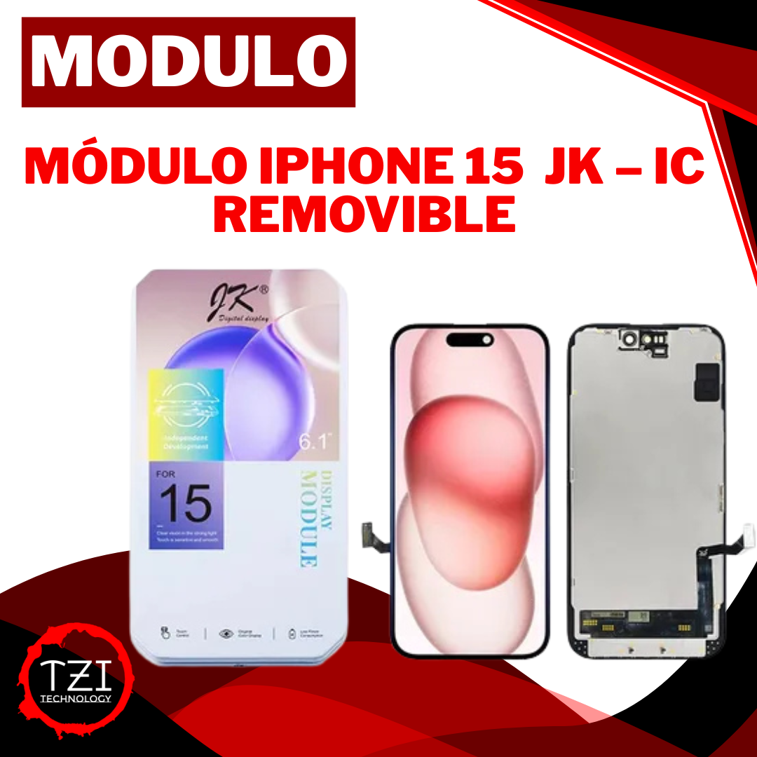 En TZI Technology disponemos del repuesto de ingeniería avanzada para el iPhone 15, diseñado específicamente para técnicos que buscan una reparación de nivel profesional en los modelos más recientes. Este módulo con tecnología JK Incell incluye la arquitectura de IC Removible, permitiendo realizar el trasplante del chip original para que el dispositivo no emita alertas de "Pieza desconocida" y conserve el historial de servicio limpio.